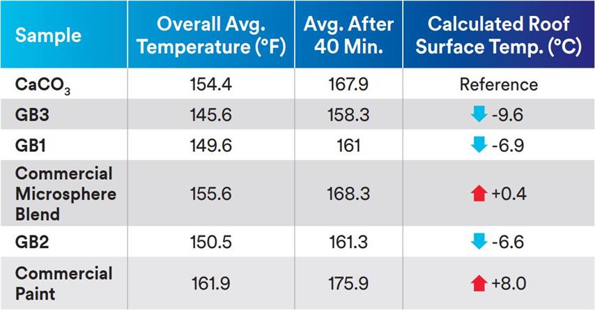 The results indicate that formulations incorporating 3M glass bubbles achieve higher overall solar reflectance, lower calculated roof surface temperatures, and greater potential energy savings than conventional fillers.